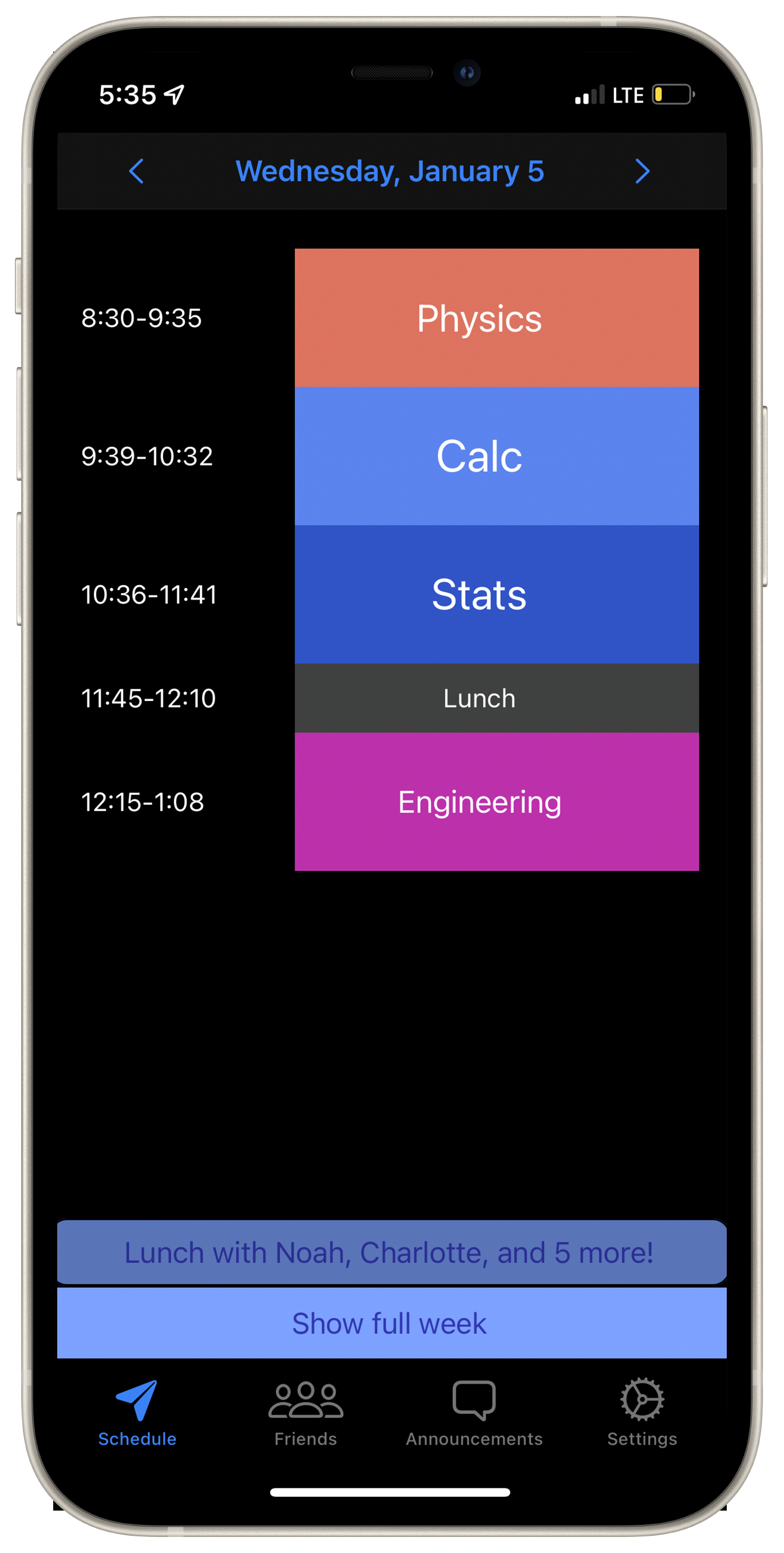 LSToday is an iOS app that I created for my high school. It has over 1500 downloads and about 650 daily active users.